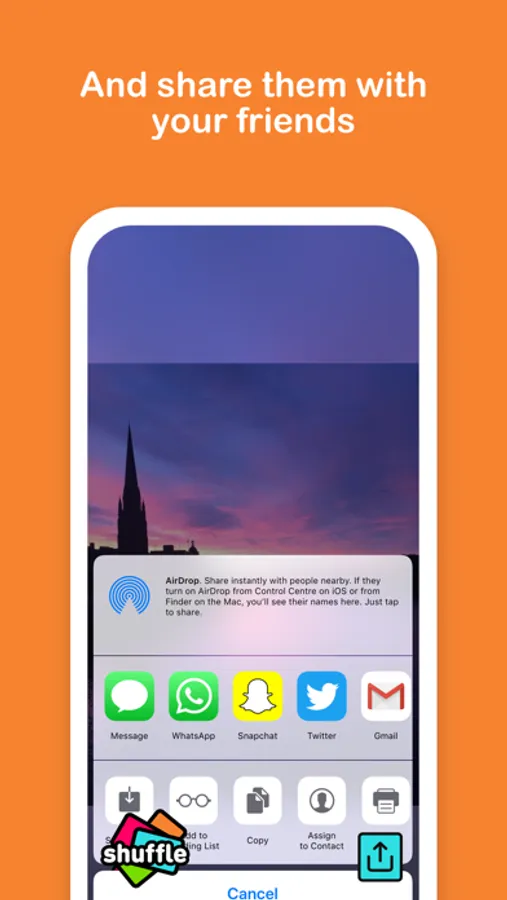 Shuffle allows you to rediscover your best moments by randomly showing you photos from your iPhone or iPad.