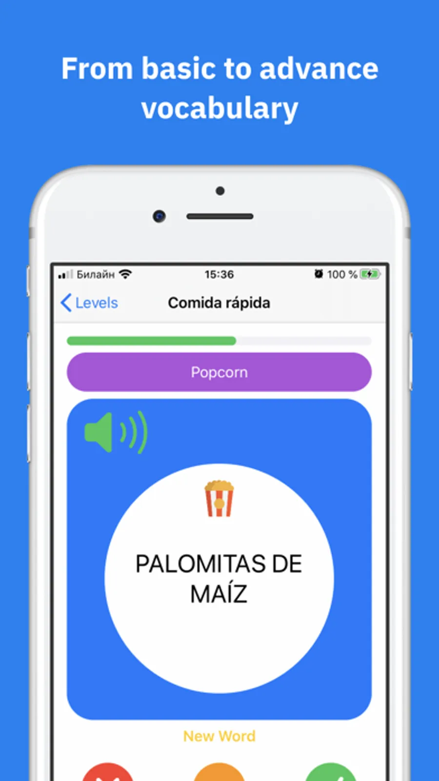 Most apps give you just basic or obscure words and focus too much in translation. Vokus breaks the mold by focusing on useful words and helping you recall them when needed, thus enhancing your fluidity when speaking the Spanish language.