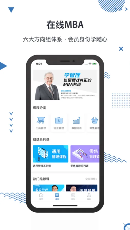涵盖“商业管理”、“创新创业”、“统计分析”、“信息技术”、“市场销售”与“零售管理”六大方向,全方位提升管理能力。