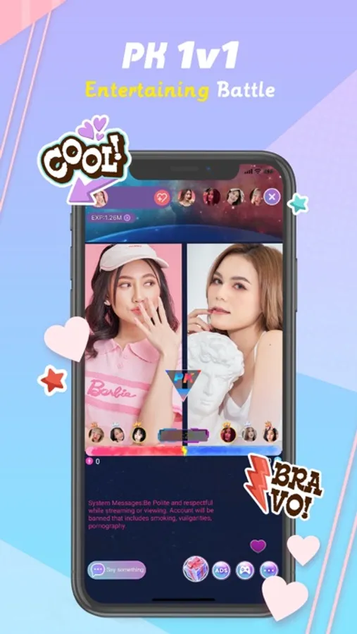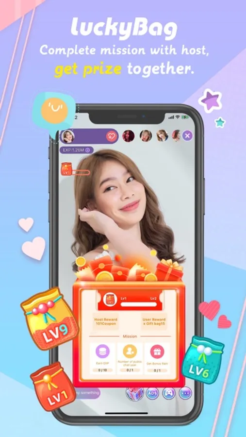 Live >> Easy broadcasting anytime and anywhere to make you becoming accurate VJ with lots of revenues, just have singing, dancing skills or real-time talking to audiences via smart phone.