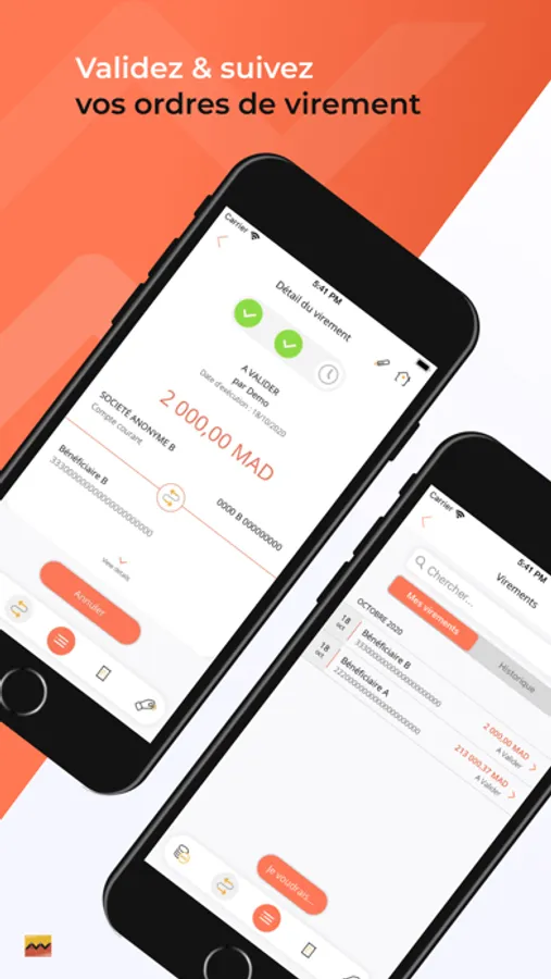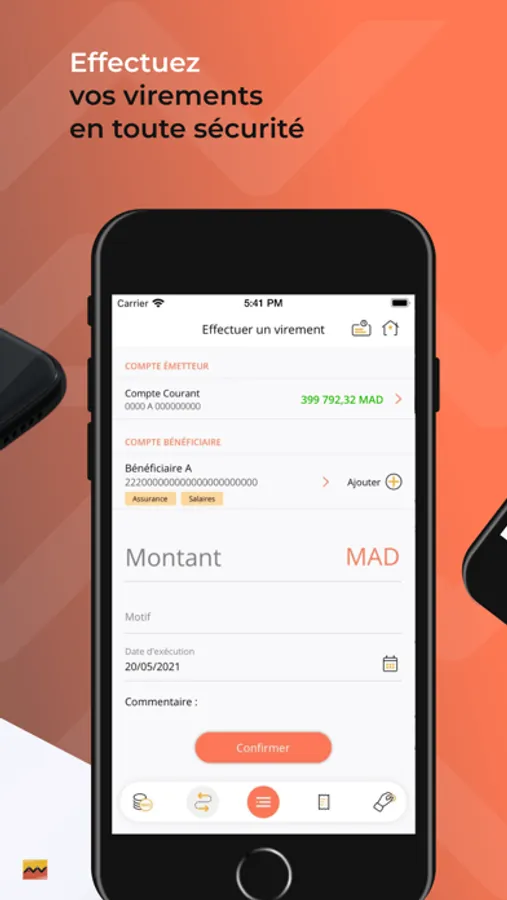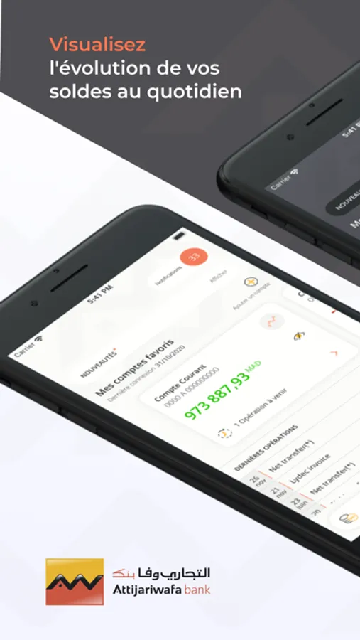 - Effectuer et suivre vos virements vers les comptes Attijariwafa bank et confrères