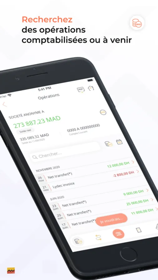 Pour faciliter la gestion de vos comptes, l'application vous permet de consulter et de gérer vos comptes en toute confidentialité et en toute sécurité à distance 24h/24 et 7J/7