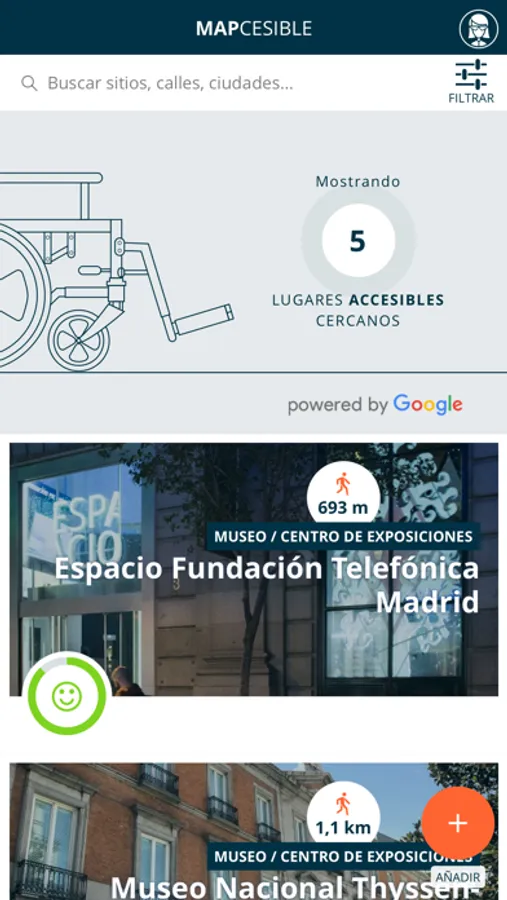 Localiza los lugares accesibles que hay a tu alrededor con Mapcesible, la App colaborativa para mapear la accesibilidad de los bares, restaurantes, tiendas, hoteles, museos, cines, teatros, polideportivos, playas,… También podrás saber fácilmente la localización de las plazas de aparcamiento para personas con movilidad reducida (PMR), los aseos públicos accesibles y los parkings accesibles. Incluso hemos añadido las playas españolas y su valoración de accesibilidad.