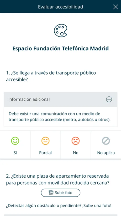 Únete a la comunidad Mapcesible y ¡Haz visible lo accesible! valorando la accesibilidad de los lugares que visites habitualmente. Es fácil, rápido y muy sencillo, gracias a las preguntas guiadas y las ayudas contextuales (realizadas con la consultoría de Ilunion Tecnología y Accesibilidad). Tus aportaciones beneficiarán a miles de personas con movilidad reducida. Porque la accesibilidad es cosa de todos.