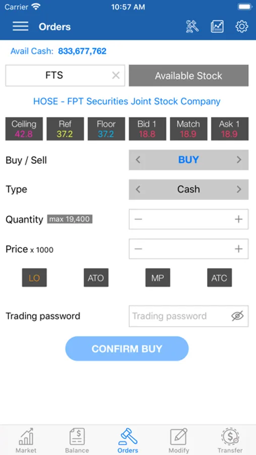 EzMobileTrading is a free application that allows FPTS’s clients to trade Vietnamese securities. You can manage your account, view market data in real-time, build personalized watchlists, place orders, transfer money and so much more.