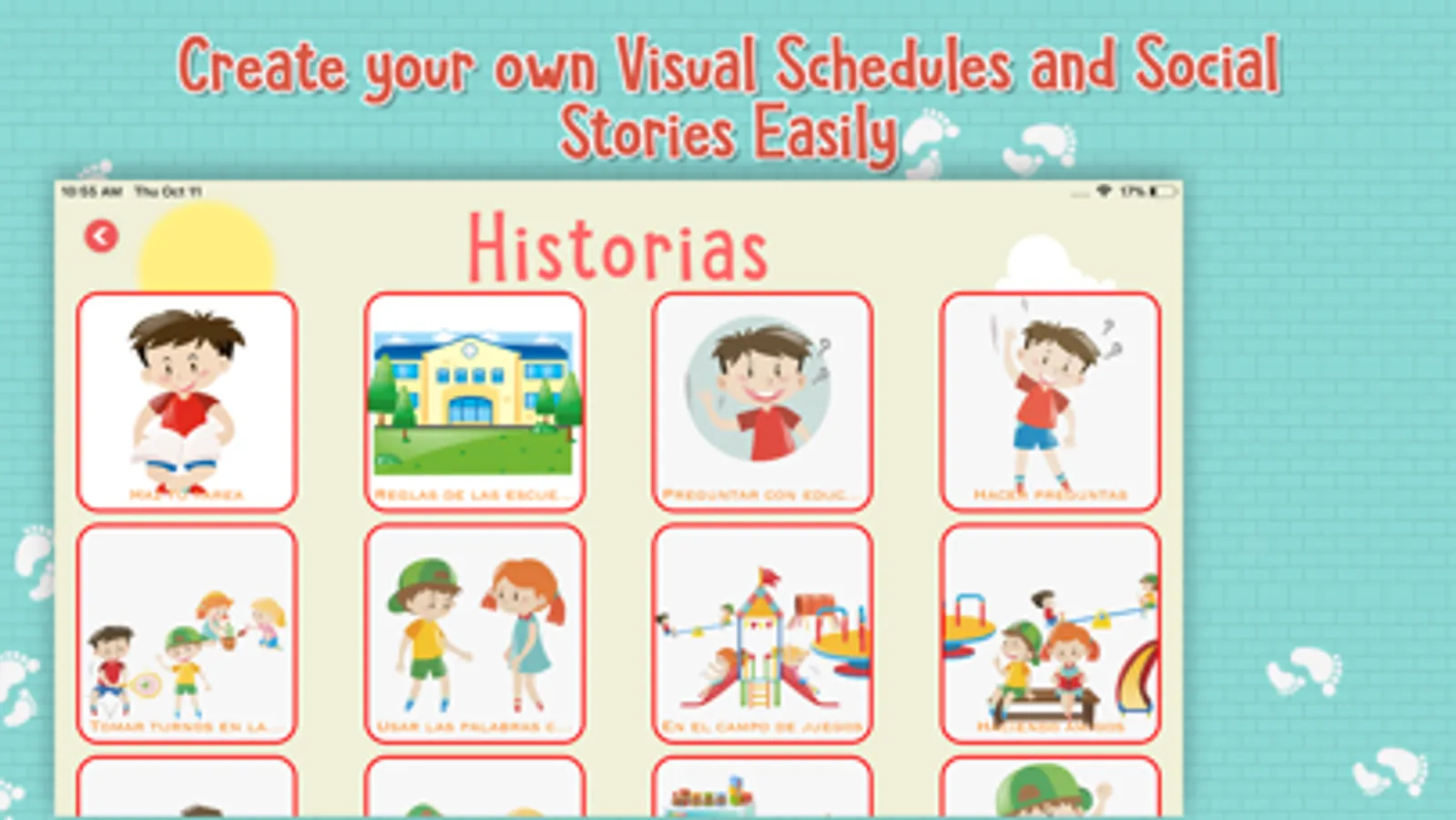 Visual Schedules And Social Stories - Español, is a visual support app focusing on using social stories and visual schedules to improve socially appropriate behaviors in children with autism. It's a virtual visual support app to assist children with autism and communication challenges at home, school and the community. The app replaces the traditional visual supports that can be cumbersome, time consuming, costly to create and limited in function.