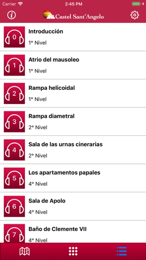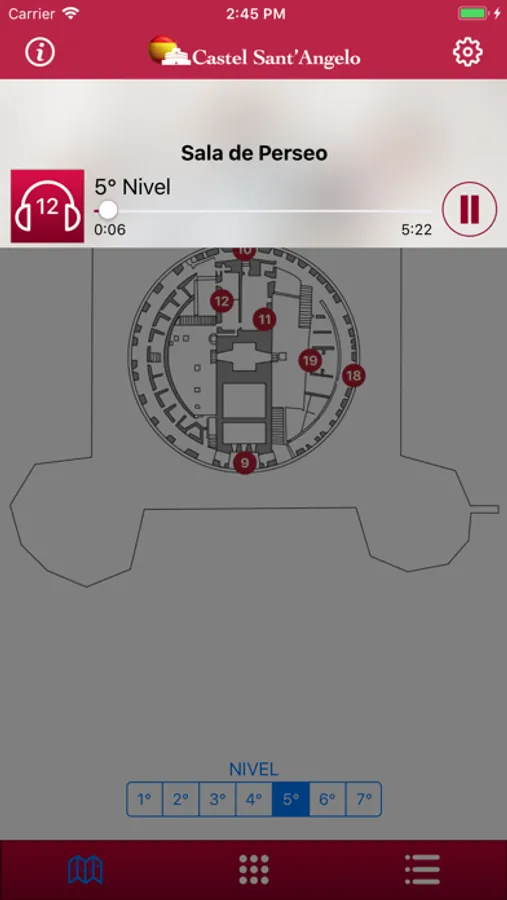 - Mapa con funcionalidad de zoom y ubicación de puntos de audio.