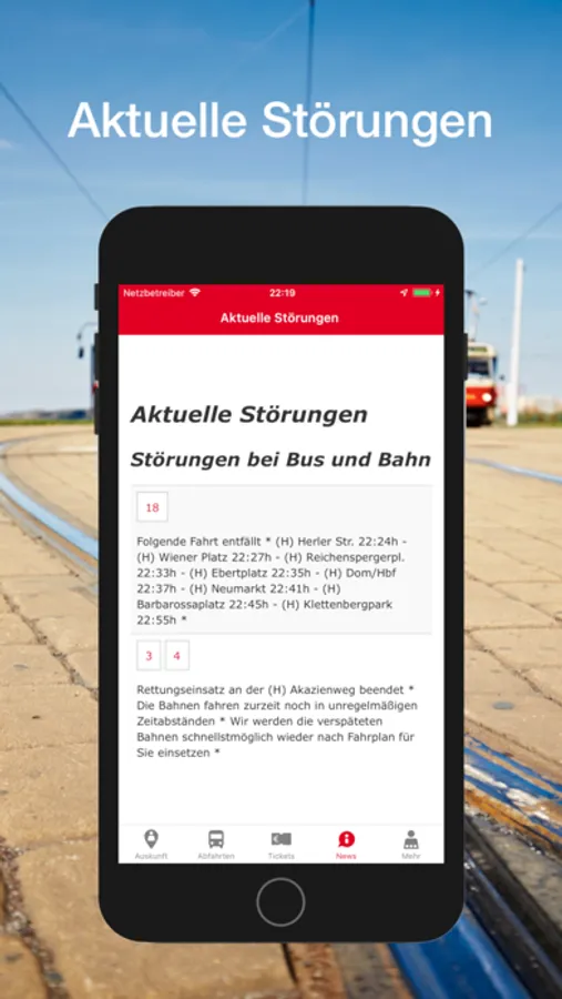 Beside the trip planner and discruption information you are able to get live data for your station. The KVB-App offers all information about KVB-Rad, Car-Sharing and Taxi-Ruf in Cologne.
