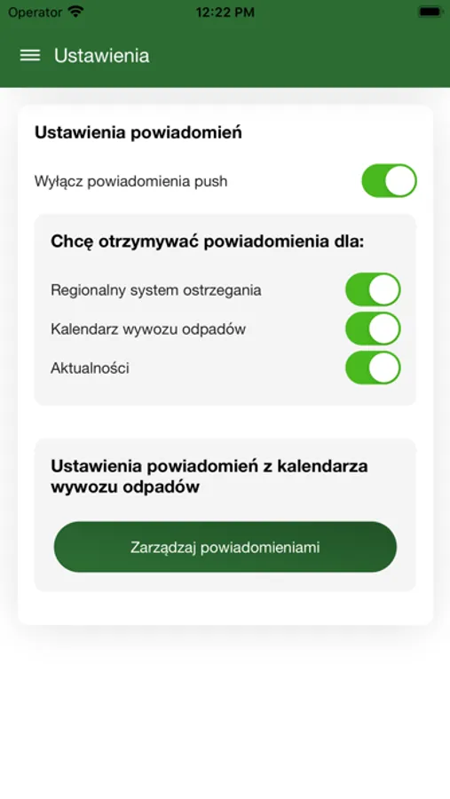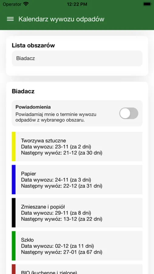 Aplikacja przypomni o terminie odbioru poszczególnych odpadów, poinformuje o zasadach prowadzenia selektywnej zbiórki odpadów, powiadomi o aktualnościach związanych z tą tematyką. Moduł umożliwia dodatkowo wysyłanie reklamacji odnośnie braku odbioru odpadów, uszkodzonego pojemnika lub innych sytuacji.
