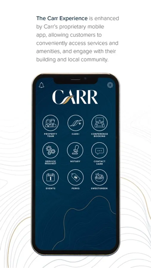 The Carr Experience is enhanced by Carr’s proprietary mobile app, allowing building customers to conveniently access services and amenities, and stay connected with their property team and building programming.