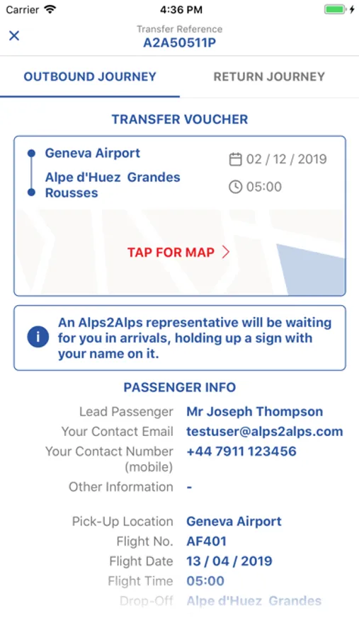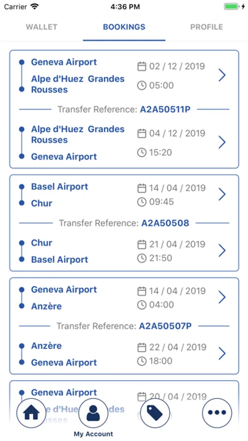 • Keep the date, time and booking details of upcoming transfers easily accessible and all in one place.