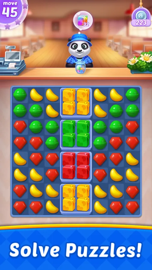 Welcome to Candy Puzzlejoy! Solve match-3 puzzles to design your wonderful home!
