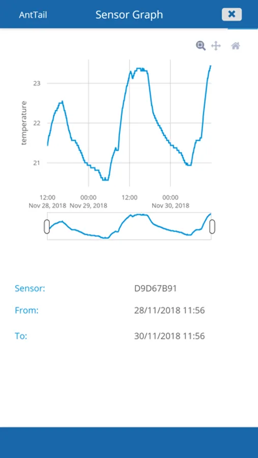 The AntTail app provides AntTail customers an extra option to read out AntTail temperature sensor with their mobile device if no AntTail gateway is available. Temperature readings and graphs can be seen within the AntTail app. The App login is equals to the AntTail back-office account of the users. The temperature data is stored directly into the AntCloud and therefore the AntTail app operates only with a stable and active internet connection.