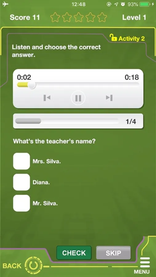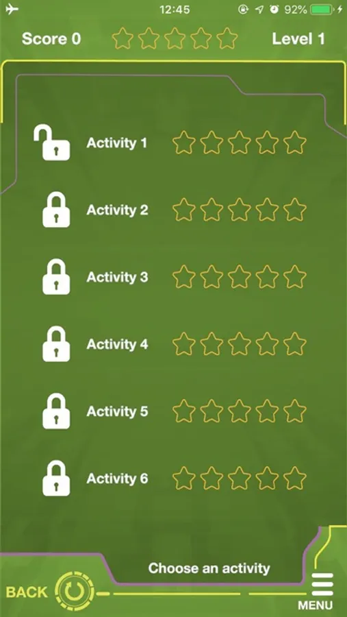 App com atividades extras para todas as unidades, para prática complementar fora da sala de aula em forma de jogo.
