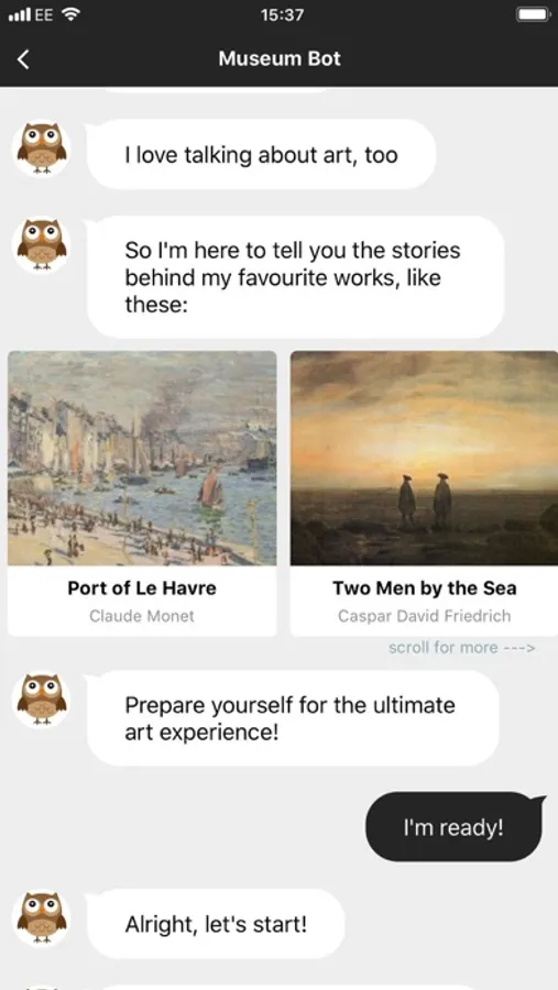 You are offered the chance to chat with a wise owl chatbot: don't miss it! Also includes a gallery to view HD paintings