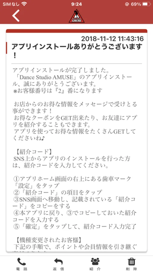 AMUSEのアプリをSNSを通じてお友達に紹介する事ができます。