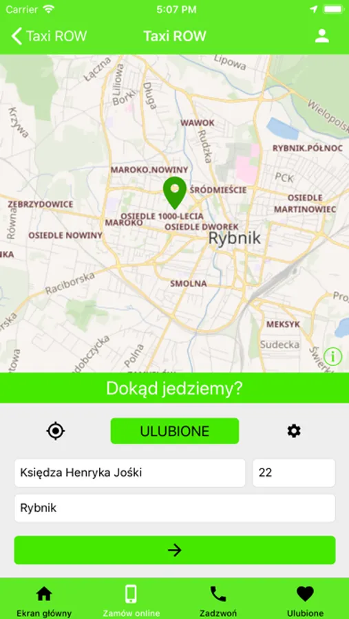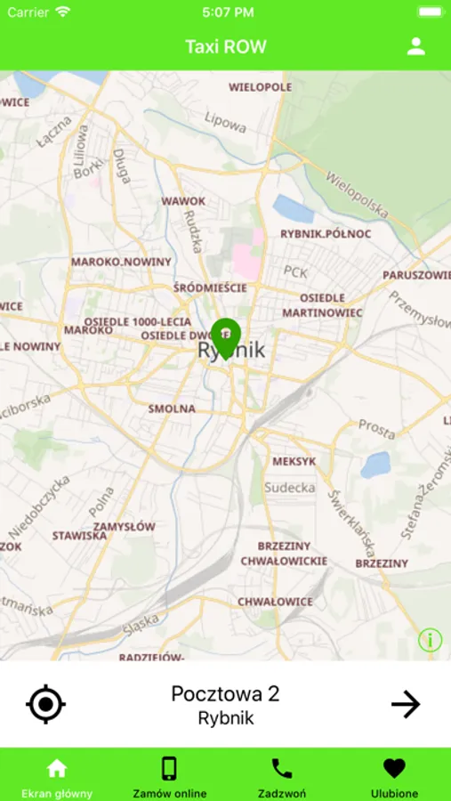 - obserwowania na mapie pozycji kierowcy (po złożeniu zamówienia pojawi się możliwość włączenia mapy, na której widać swoją pozycję oraz pozycję auta),