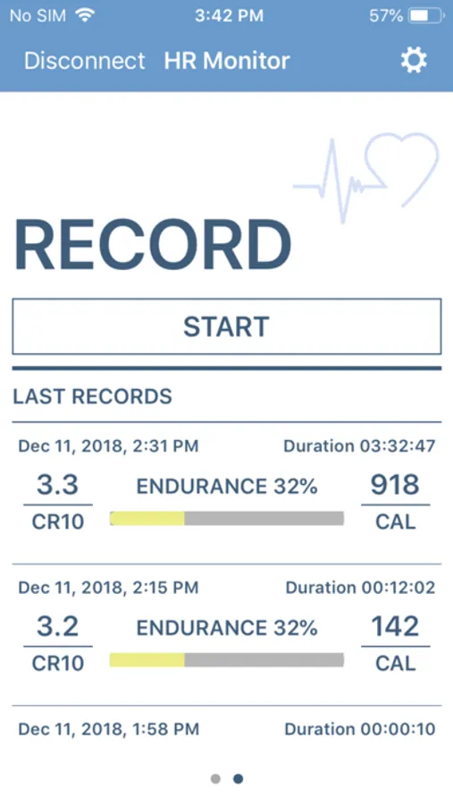 Innovative display and documentation of the heart rate in combination with a Bluetooth Smart chest belt.