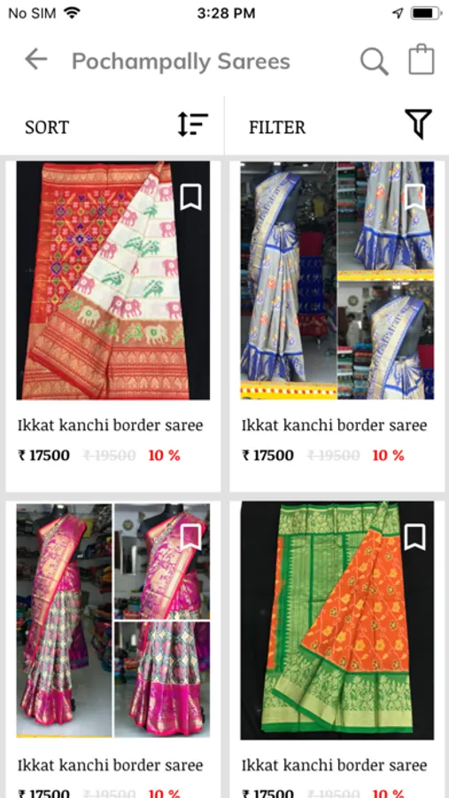 the product listing page have sort and filters. Sort is using to sort by price and discount and filters are used to filter some number of discounts and price ranges.