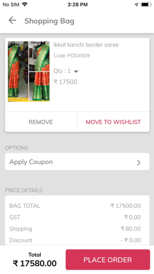We have a wishlist option that customer can add the product to wishlist and can see later and buy. Once they added product to cart we show the added products and total amount payable with tax and shipping in the cart page. Also give option for adding a coupon code. Coupon we have did with percentage. Once he applied coupon code and its verified coupon code means the discount will get added.
