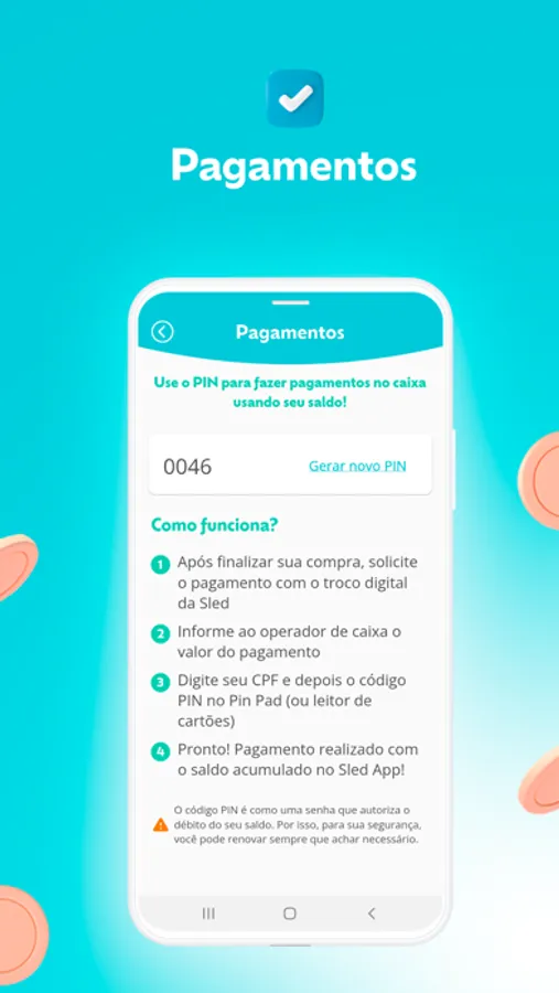 Torne sua jornada de compra no varejo físico mais ágil com experiências de valor da Sled. Basta inserir o CPF no Pin Pad e seu troco será creditado na carteira digital. Ao receber o troco digital você tem muitas possibilidades de uso: novas compras, transferências, recarga de celular, doações, pagamentos ou deixar rendendo.