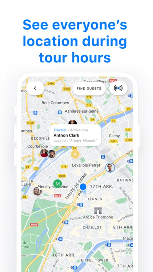 SEE EVERYONE'S LOCATION DURING TOUR HOURS: