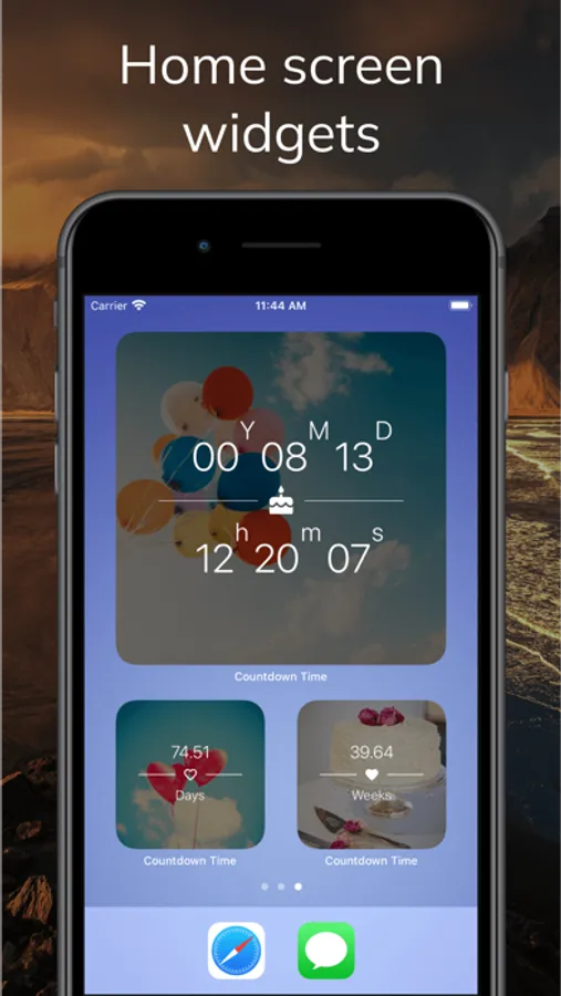 Count down in days, heartbeats, years and more - just pick the display mode that fits your big day. The app comes with breathtaking backgrounds that go with any occasion: from wedding days and to travel.