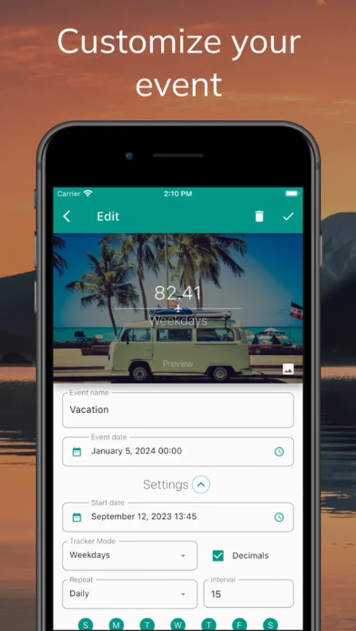 Your clock is what you want it to be and your date is when you want it to be. Choose from 15 app themes to personalize your count down clock.