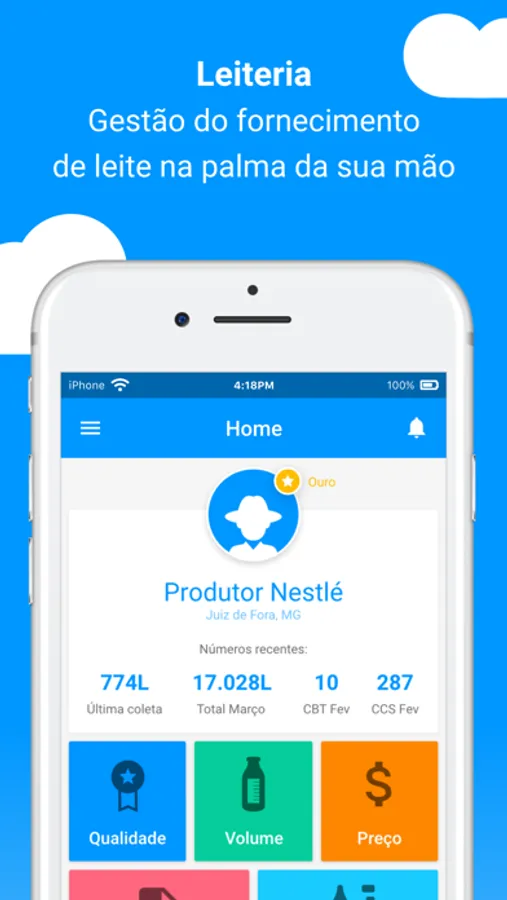 O App Leiteria traz para o produtor de leite da Nestlé agilidade no recebimento de informações e a possibilidade da gestão dos resultados relacionados ao seu fornecimento!