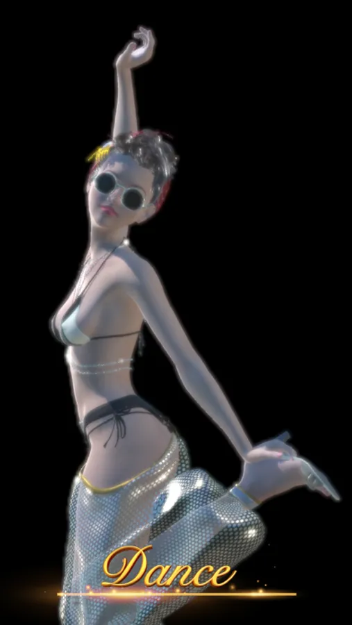 - Watch the model walk or dance her way on the stage of your choosing. Select the black background to make the background effects pop or watch the model pose in front of a giant screen backdrop.