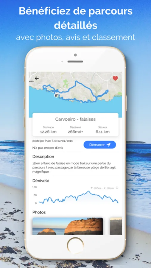 • Trouver des parcours au plus proche de toi avec la possibilité de donner un avis sur chaque parcours réalisé et d'ajouter tes propres photos ;