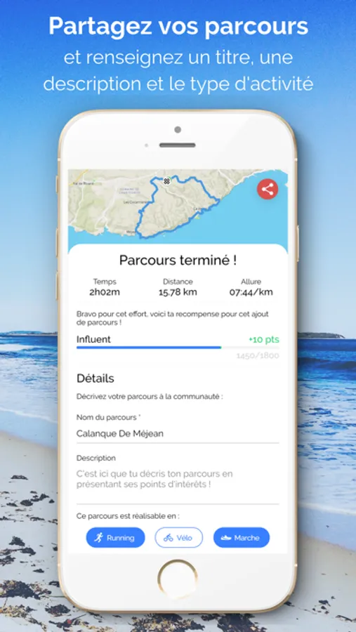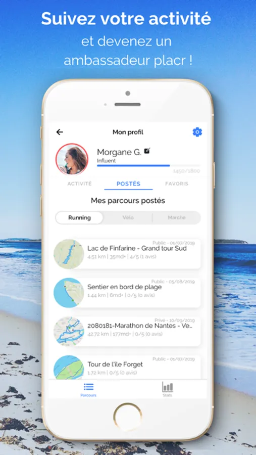 • Gamifier ton activité dans l’appli pour devenir un ambassadeur Placr en fonction du nombre de parcours réalisés et partagés.