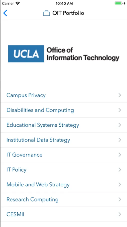 The Office of Information Technology organization has created an app to showcase its available services to other UCLA departments, researchers, faculty, staff, students and beyond. OIT manages a very broad portfolio of departments, initiatives and resources. It includes the operational group that supports UCLA’s IDRE ( Institute for Digital Research and Education). OIT’s services and resources include Educational tools, IT Training tools, Research tools and SW and Cloud licensing discounts. OIT also has several different consulting services available in the areas of: accessibilty, mobility, privacy, research, statistics and web. Finally OIT manages the community partnership components of Information technology for the campus including BruinTech, IS Associates and Smart Manufacturing to name a few. OIT’s News and Events are also featured on the app.