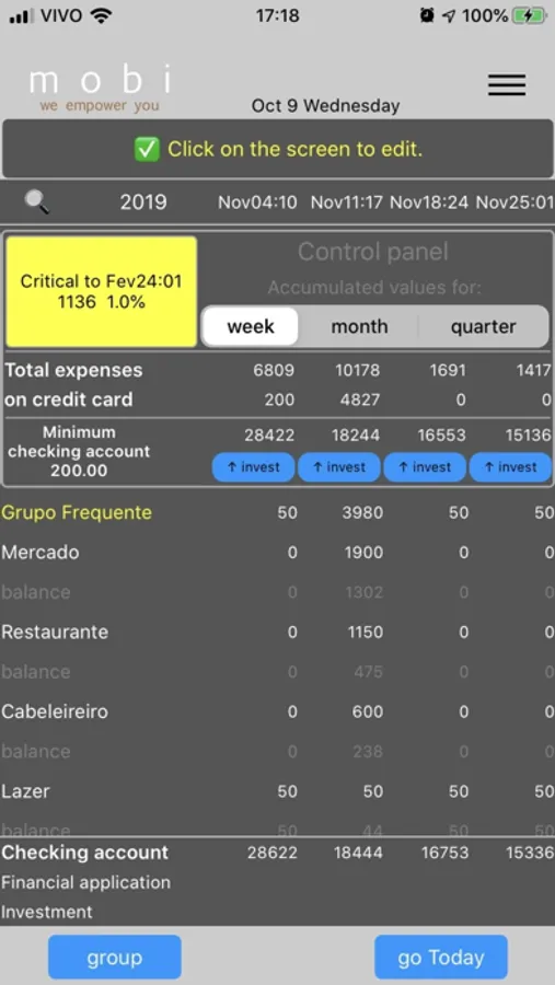 -Input and data changes very intuitive and fast, even if it is in installments, such as for credit card. No use of calculator for the value of the installment to launch or be making boring reclassifications of expenses.