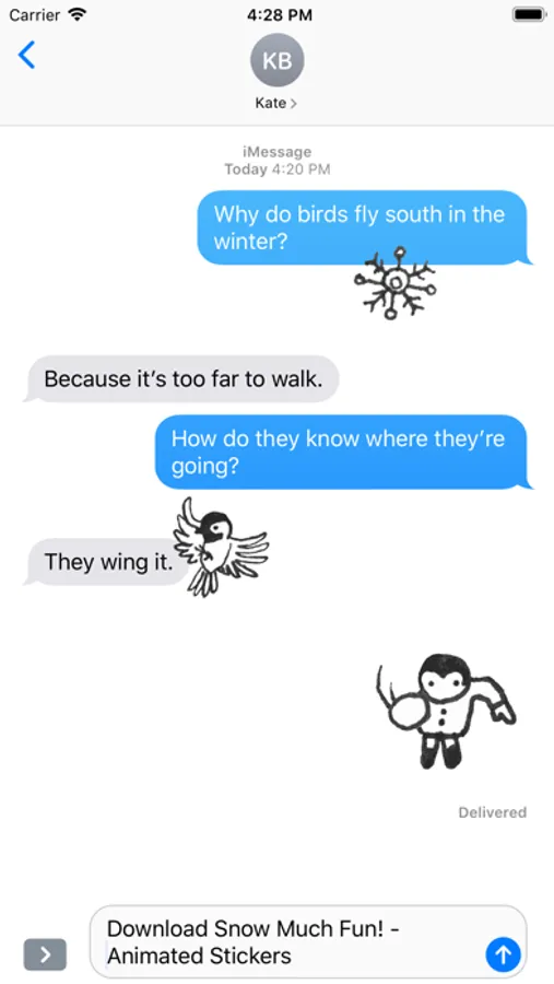 Whether you’re chilling outside or staying cozy indoors, it’ll be Snow Much Fun! to add a winter punch to your chats. Download today, then let it snow.