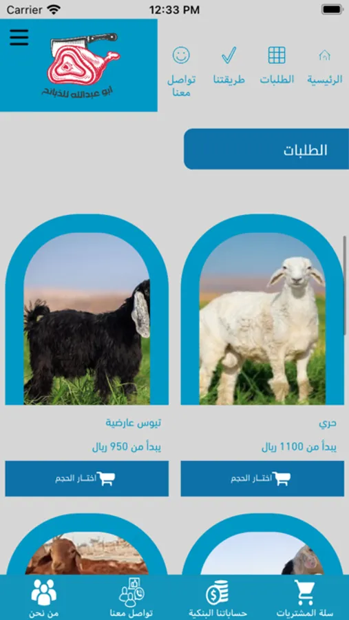 تطبيق يسمح لك بطلب الزبائح وتحديد نوع الزبيحه اونلاين ثم ادخال بياناتك مباشرة ليتم التواصل معك