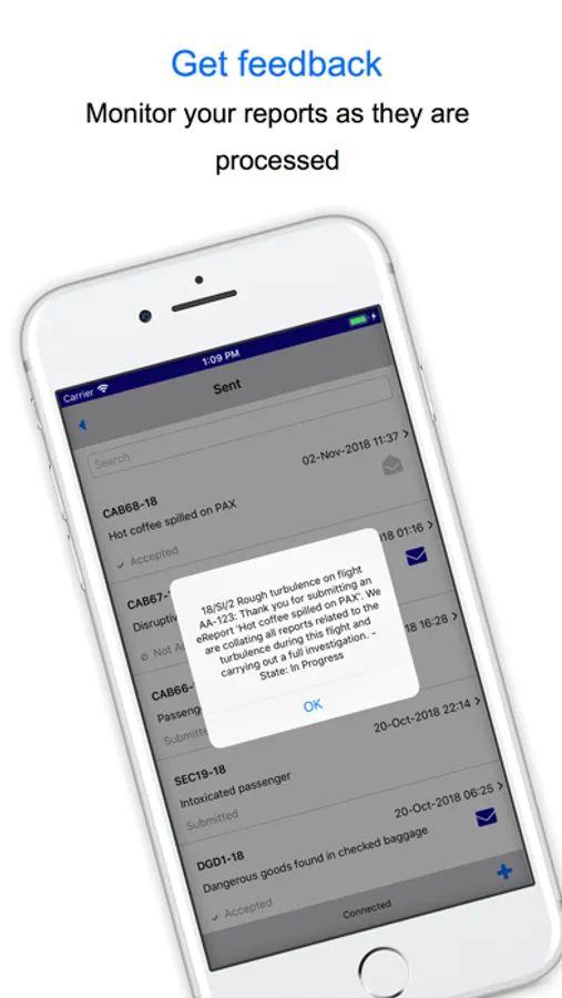 Updates to the application data are managed seamlessly through our Connect web service. Send a report from the app to our browser based application, SMS Solution where it will be assessed. Then, monitor the feedback and status of your sent report from within the app. Mobile eReports (SMS) provides you access to everything you need to complete the reporting process from your mobile device.