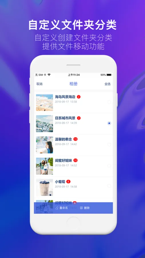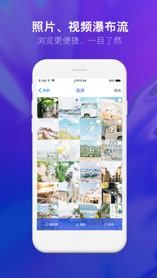 *自定义创建文件夹分类,让您的保存更有序,更简洁,提供文件移动功能,让您轻松将图片或者视频移动到各个文件夹。