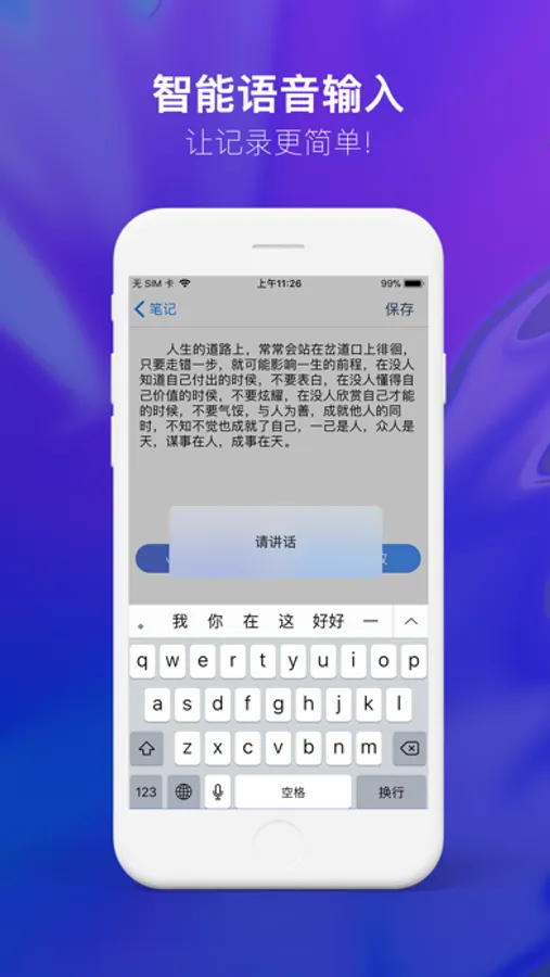 *提供AI记录文本信息,您在也不用辛苦打字了,只需张开嘴巴,语音记录您的想法,让书写日记更简单,同时提供朗读功能,准确播放您记录的点点滴滴。