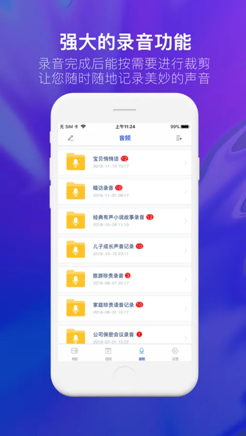 *内置强大的录音功能,录音完成后能按需要进行裁剪,让您随时随地记录美妙的声音。