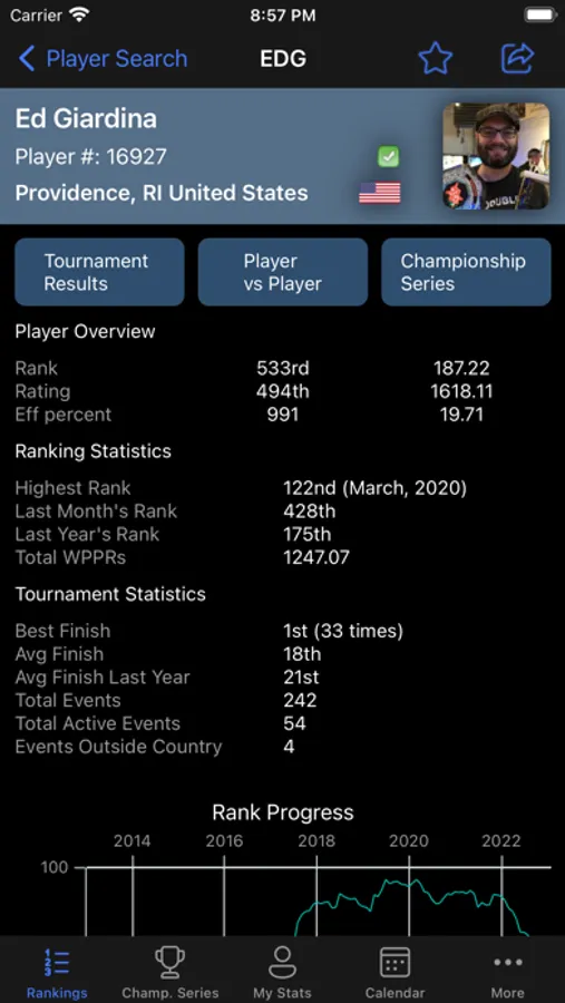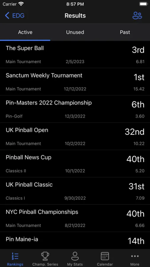 Track nearby pinball tournaments, save your profile to quickly see updates, and more, all with the IFPA Companion! Easily view your progress, see head to head performance, and view the latest tournament submissions with ease. Quickly scan the top ranked players in the world, or choose any submitted tournament to see all players standings and data. Be notified for when a tournament submission or ranking change takes place on your profile. Add tournaments to your device's calendar, share your ranking with others, and view pinball ranking statistics from around the globe.