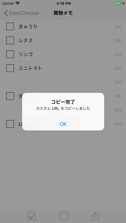 項目のタップによりチェックのオン/オフが切り替えられるほか、