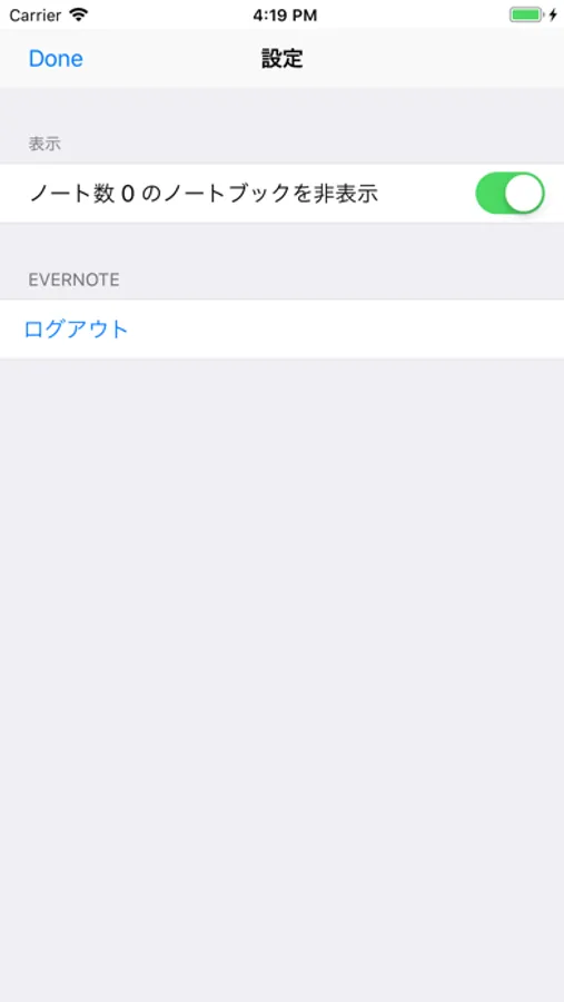 設定画面で「ノート数 0 のノートブックを非表示」を ON にすると、