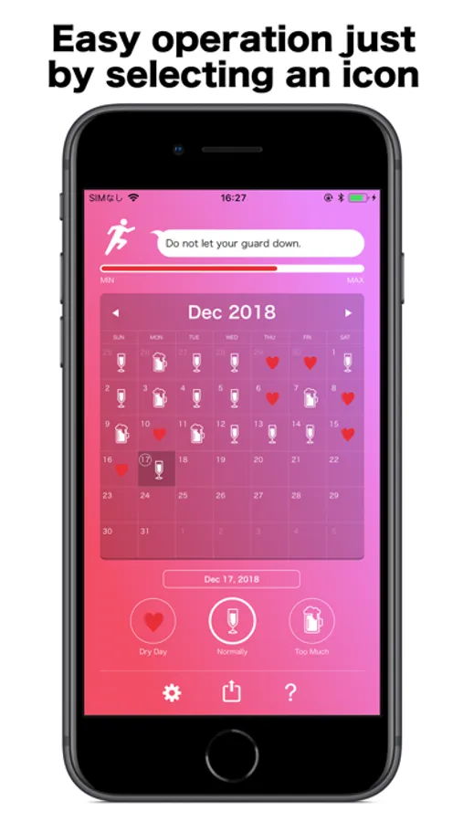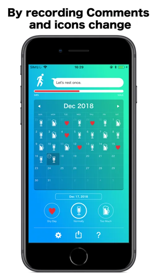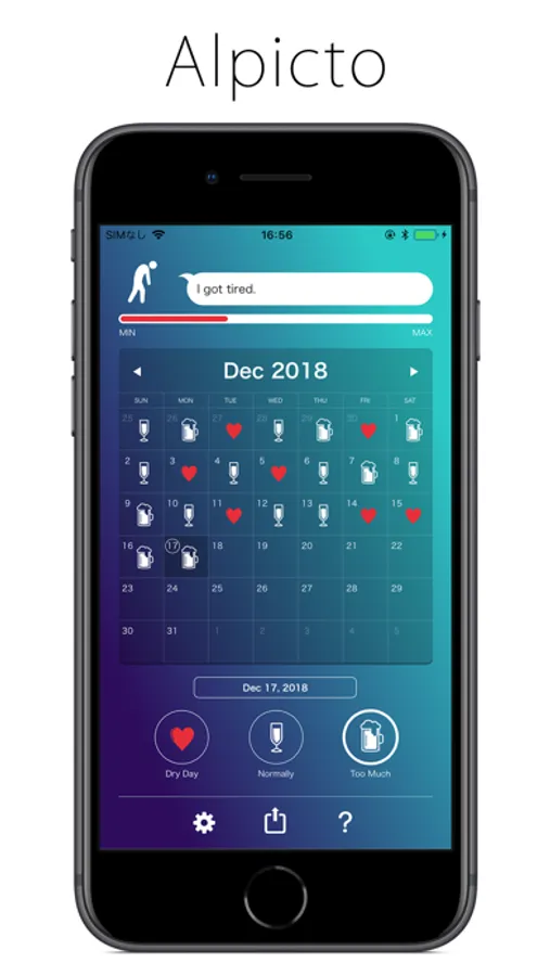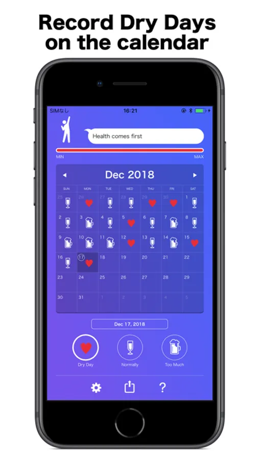 · Recorded on calendar divided into 3 types of "rest day", "appropriate amount", "excessive drinking"