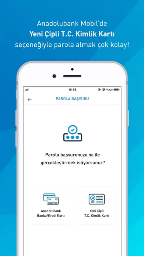 Anadolubank Mobil’i kullanmak çok kolay! İnternet Şube/ Anadolubank Mobil şifreniz ile kolayca giriş sağlayabilirsiniz. Şifreniz yok ise “Parolamı unuttum”a tıklayıp kredi kartı ya da banka kart numaranız ile şifrenizi hızlıca alabilirsiniz.