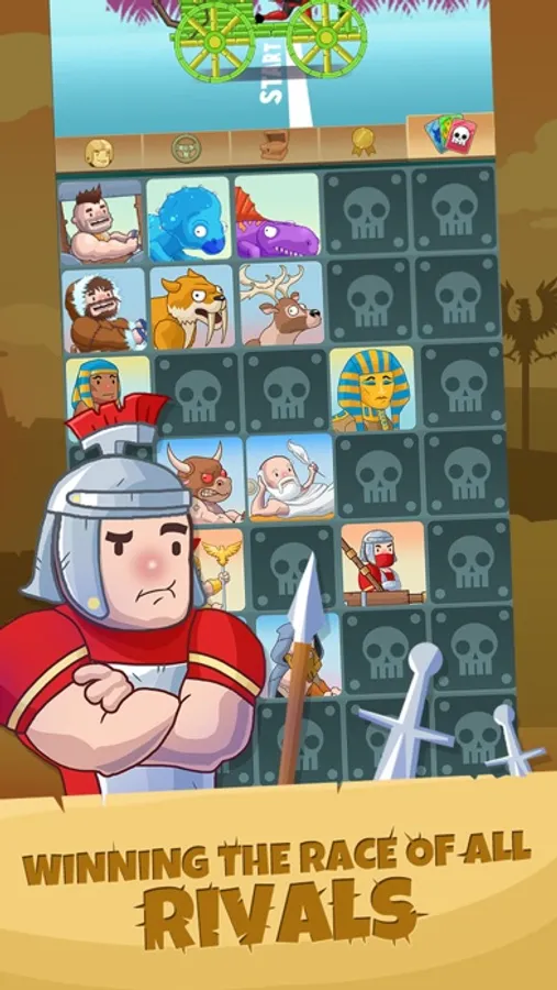 Collect and pump the legendary vehicle. Dozens of epochs and characters of opponents of different factions are waiting for you! Go through the whole evolution people and the world through epochs starting with primitive man. Become the most legendary racer known to the whole world!