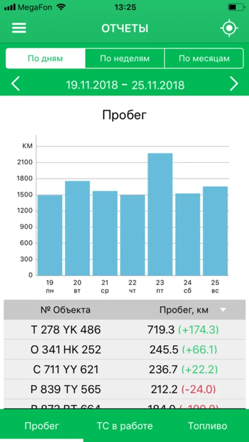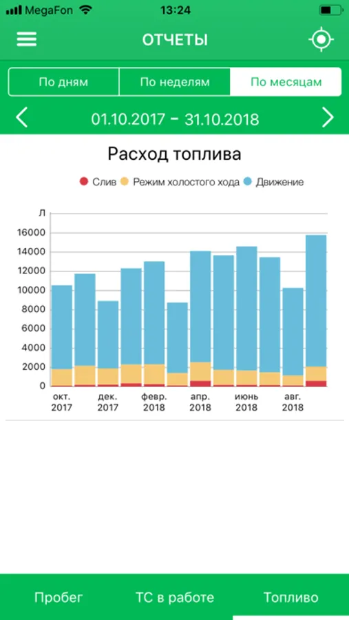 — Режим «Отчёты» - позволяет строить аналитические отчёты по работе как всего автопарка так и интересующему объекту контроля.