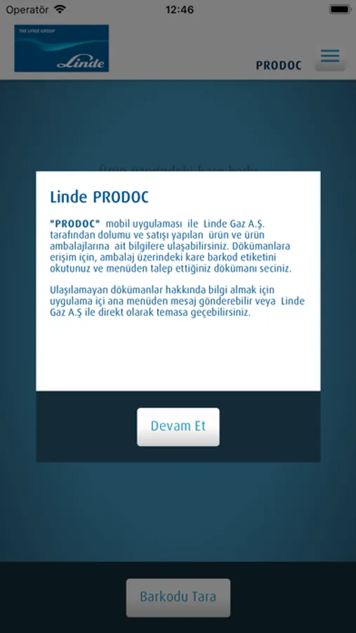 Linde Gaz A.Ş. tarafından satışı yapılan ve bu uygulama kapsamında olan ürünlerin ambalalarına ait müşteriler tarafından sahalarında kullanımda olan ve depolanan tüplü ürünlerin ambalajlarına ait imalat ve peryodik test raporu dökümanına, ambalaj üzerindeki kare kodu okutulması akabinde Linde Gaz A.Ş nin müşterilerine sağlanan “Kullanıcı adı ve Parola” ile erişerek mobil telefonunuzda görüntüleyebilir ve/veya dosya olarak indirebilirsiniz.