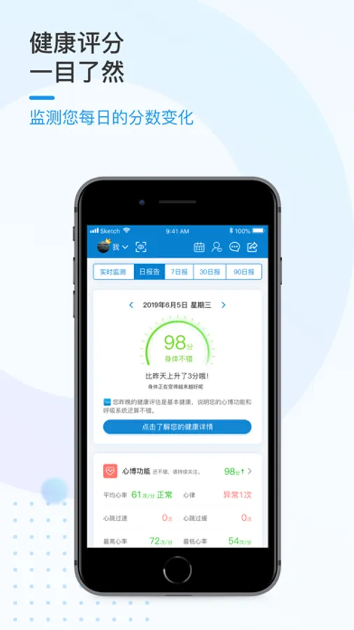 znZI能监测人体多项体征数据,通过体征数据采集、过滤、解析等步骤给用户呈现专业的健康数据统计和全面分析。用户可通过手机及时发现健康异常并进行干预,真正做到健康监护常态化,为使用者日常健康保驾护航。
