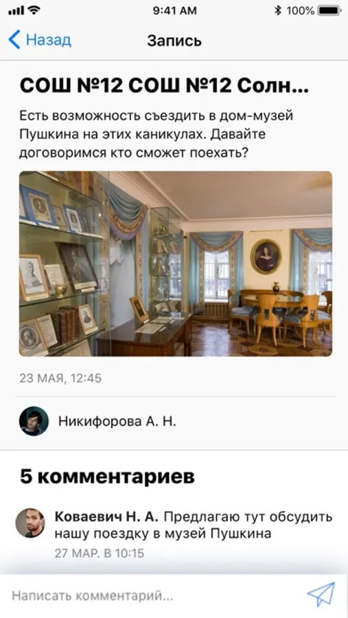 Первая версия приложения позволяет эффективно вести ежедневную образовательную деятельность: выставлять оценки, выдавать домашние задания, отслеживания собственное расписание.